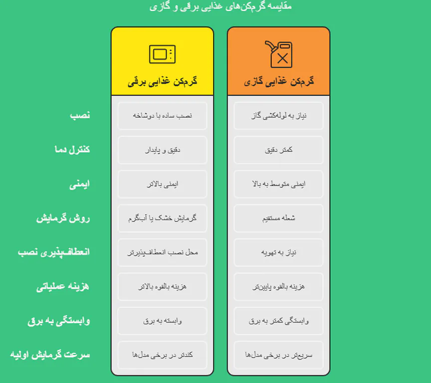 تفاوت گرمکن غذا گازی و برقی در یک نگاه
