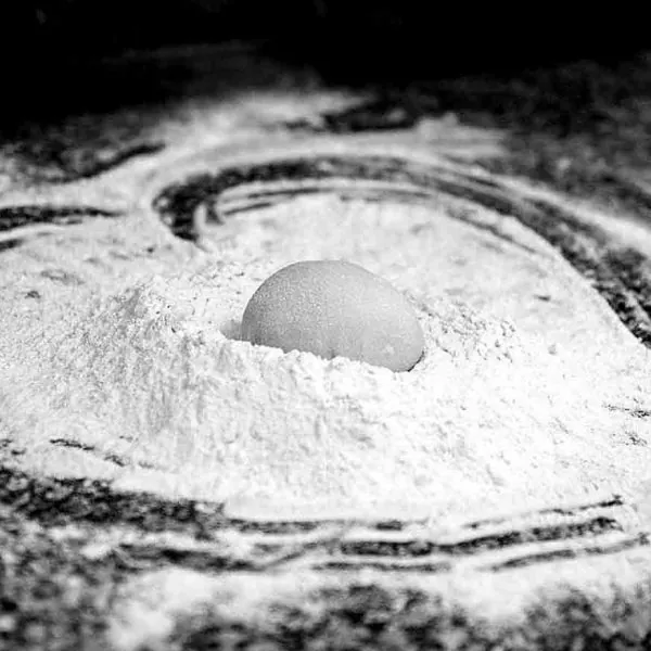 ۸. در این مرحله نوبت به چونه گیری خمیر میرسد و بعد از گرفتن و درست کردن چونه ها به اندازه دلخواه باز هم به مدت ۲۰ دقیقه باید استراحت بدهیم.