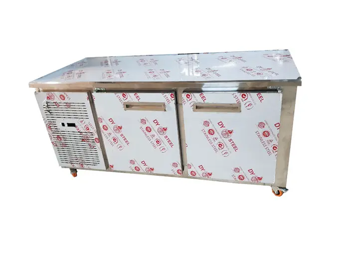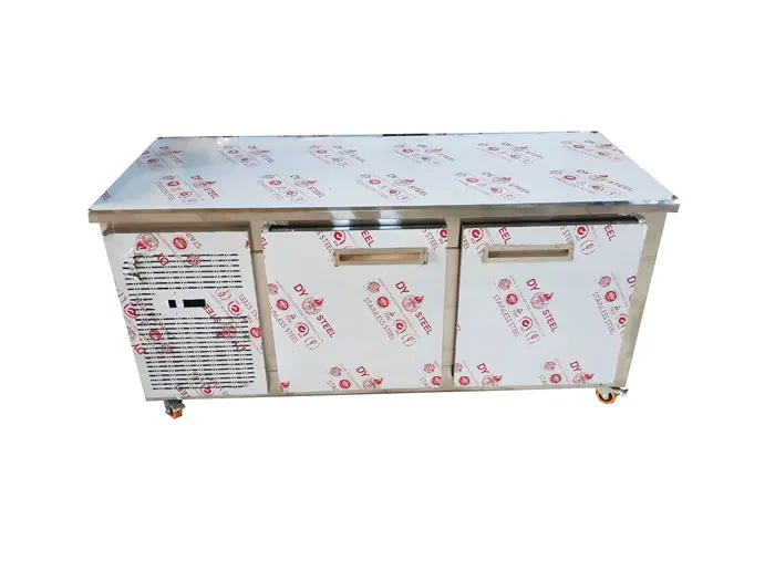 یخچال میز کاری ۱۵۰ سانتی، انتخابی حرفهای برای آشپزخانههای فستفود، رستوران و کترینگ است که میخواهند در کمترین فضا، هم یخچال زیرمیزی داشته باشند و هم یک سطح کار استیل برای آمادهسازی غذا.