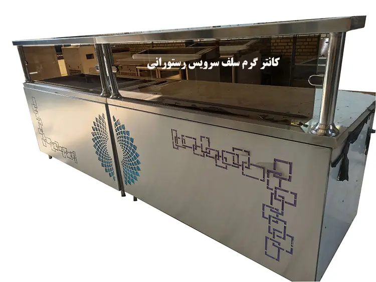 کانتر رستورانی مناسب برای گرم نگه داشتن انواع غذا در سلف سرویس ها ،رستورانها،فروشگاههای زنجیره ای و سلف دانشگاهها میباشد. این دستگاه با مدلهای سفارشی : رف و شیشه دار،ریل دار،نما دار و نمای PVC نیز تولید میشود.