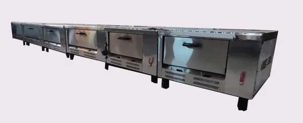 فر صندوقی ۶ بشقاب ساده و قیمت اقتصادی بهترین وسیله برای پخت پیتزا معمولی میباشد. ظرفیت اسن دستگاه ۶ بشقاب قالب ۲۳ میباشد. یک دستگاه بسیار ساده و اقتصادی با کف آجر مناسب برای پخت پیتزا رد فست فود های کوچک میباشد.ابعاد دستگاه فر پیتزا ۶ بشقاب ساده عبارت است از ۷۸*۷۹ در ارتفاع ۹۰ میباشد.
